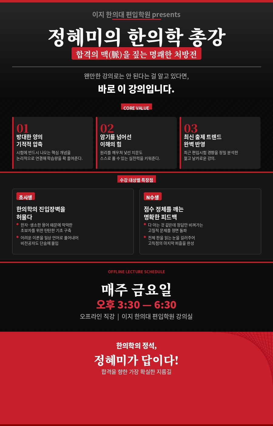 "방대한 양의 압축": 단순 나열식 수업이 아닌, 시험에 반드시 나오는 핵심 개념을 논리적으로 연결해 학습량을 획기적으로 줄여줍니다.
